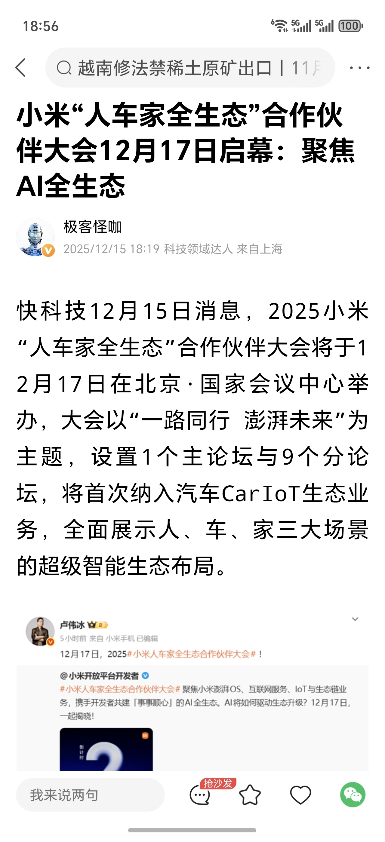 $小米集团-W(HK|01810)$ 看好小米人车家全生态,未来股票自然会上去,不在意短时间的涨跌。