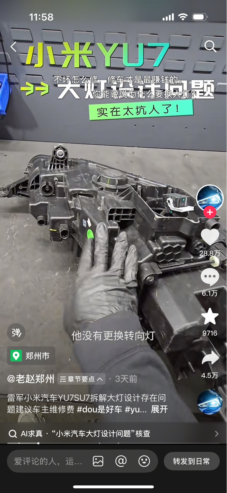 灯泡坏了只能换总成六千多?本来换个灯泡只需要一分钟时间最多也就几十块。这谁设计的