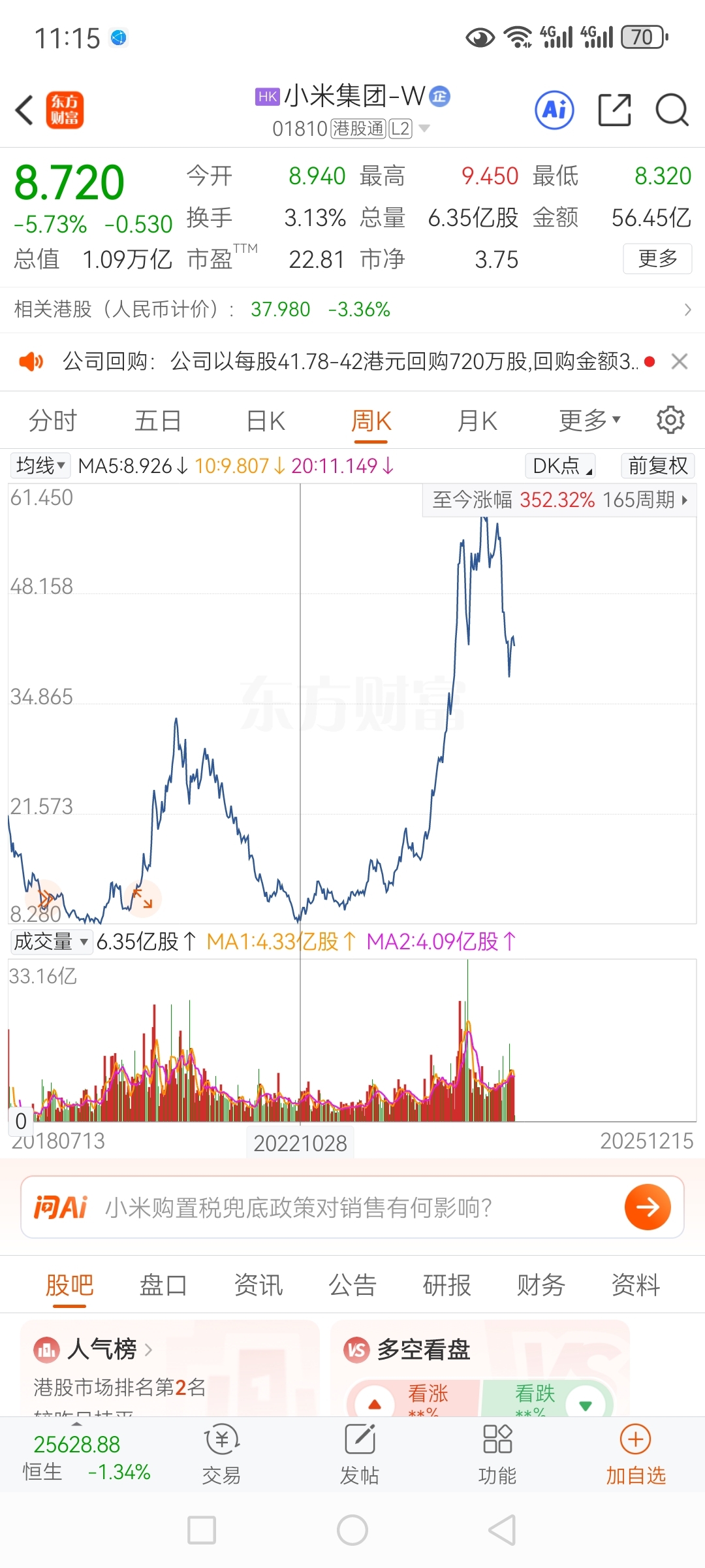 $小米集团-W(HK|01810)$ 这个位置是我的成本价,主力你砸我啊,我怕你跌
