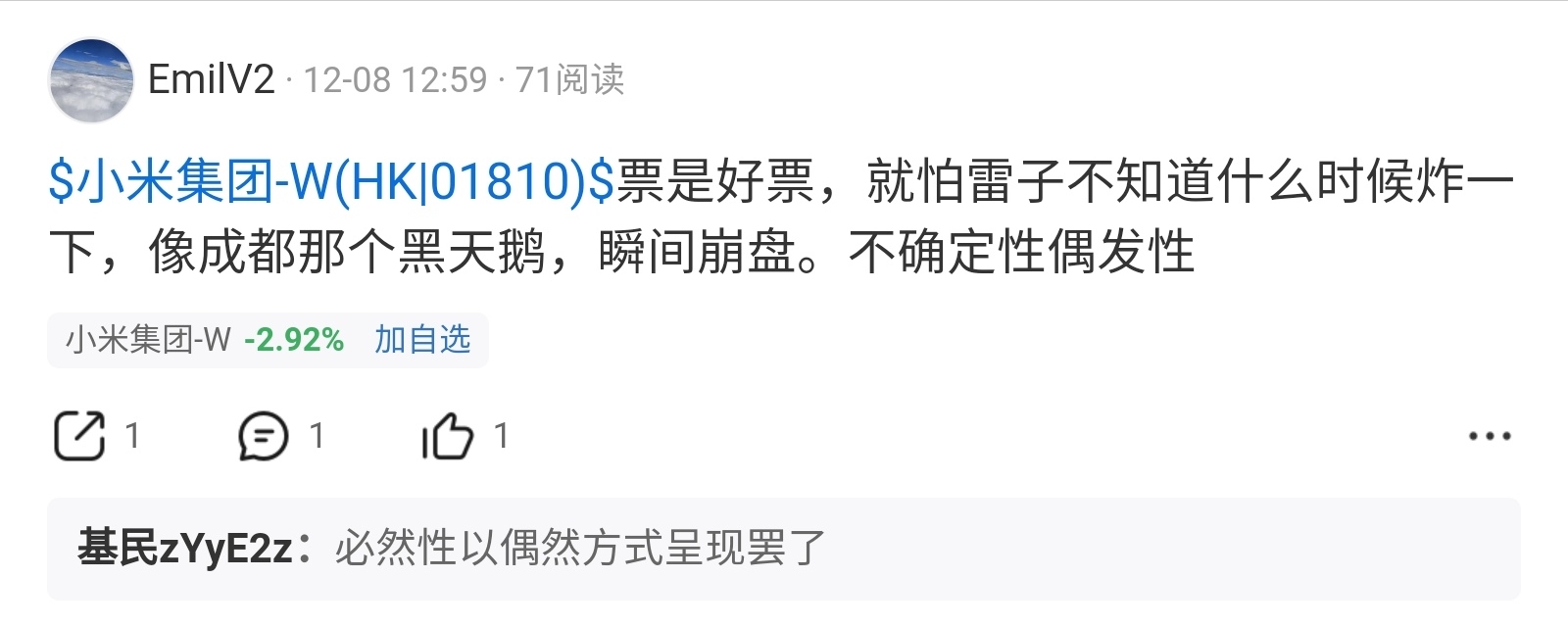 $小米集团-W(HK|01810)$ 一直都是这个观点,靠谱的东西不多