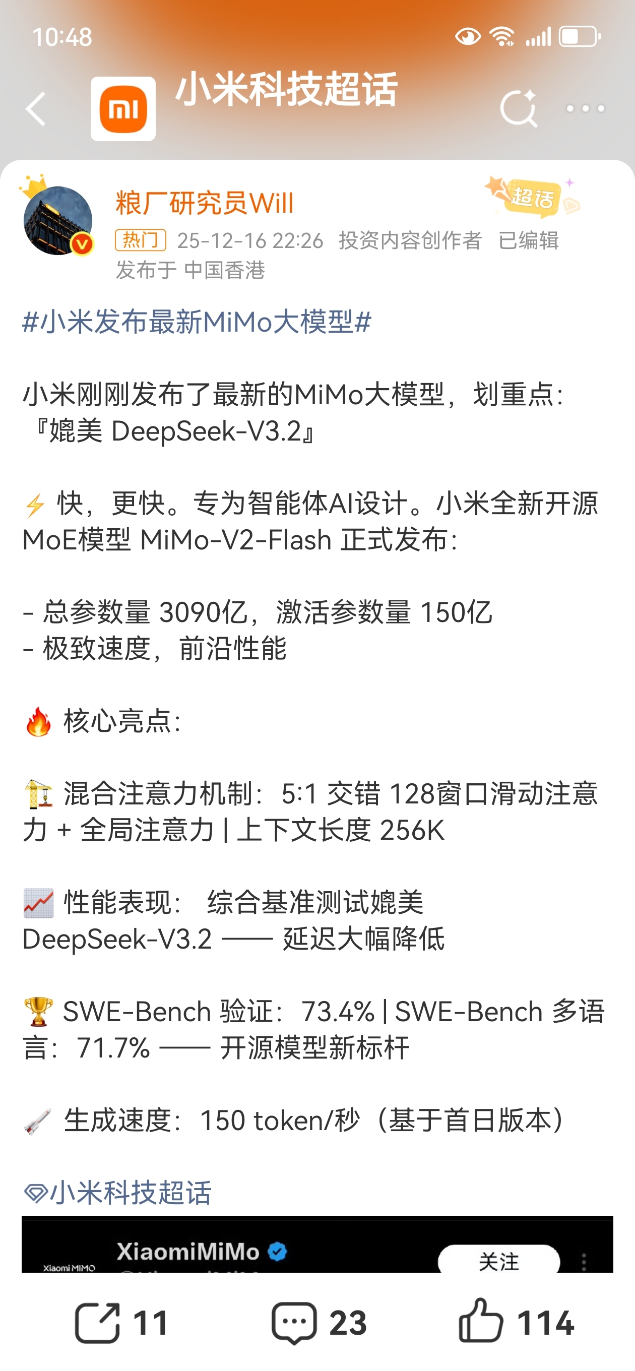 $小米集团-W(HK|01810)$ 媲美DeepSeekV3.2版