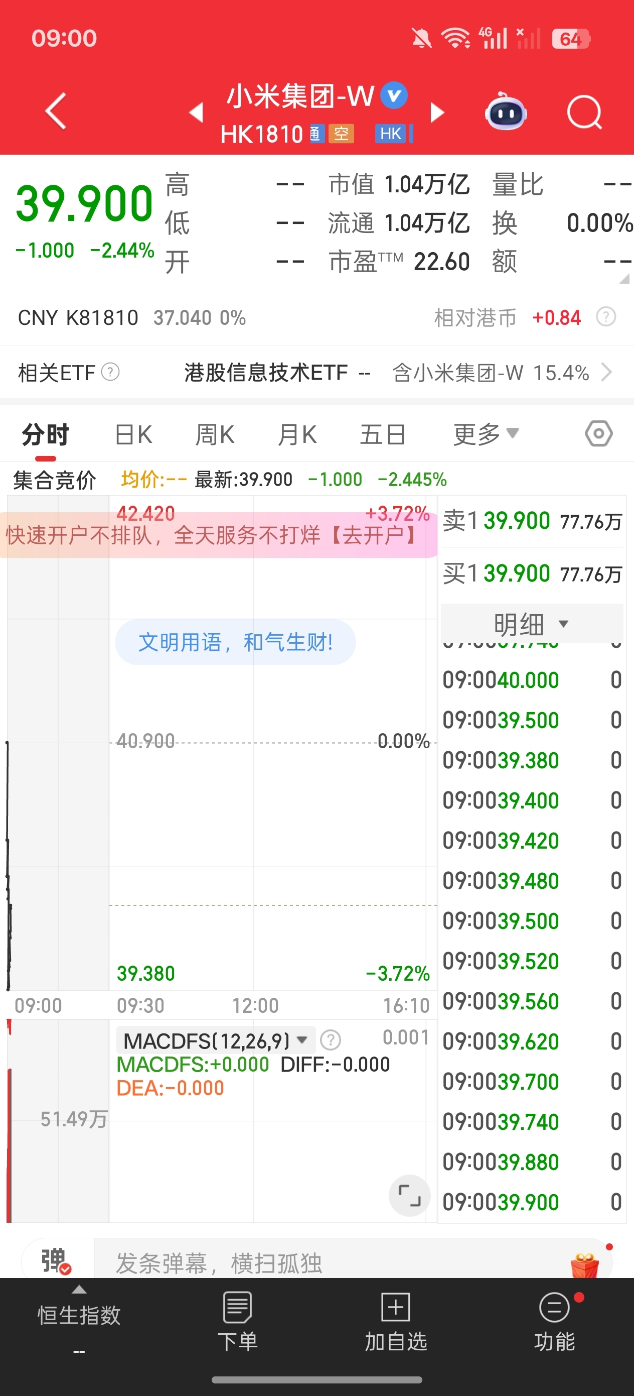 $小米集团-W(HK|01810)$ 今天估计要跌6个点,炒股第1条,不买问题公司。我们黑粉又不是傻,这么多好公司不买,干嘛要买一个有问题的公司,信用崩塌的公司