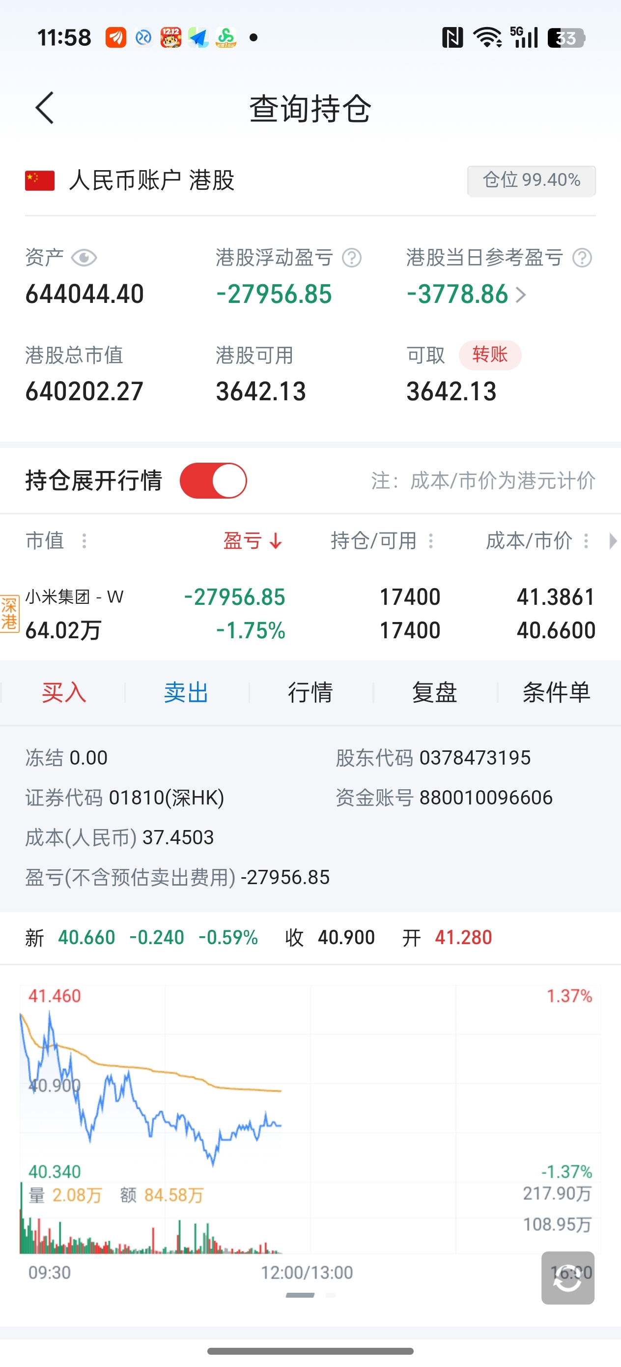 $小米集团-W(HK|01810)$ 为什么显示亏1.75%。金额亏损27000多。 这是怎么算的 买进来十几天没有操作过, 第一次玩港股 不太懂 麻烦各位熟悉的大佬介绍一下,谢谢