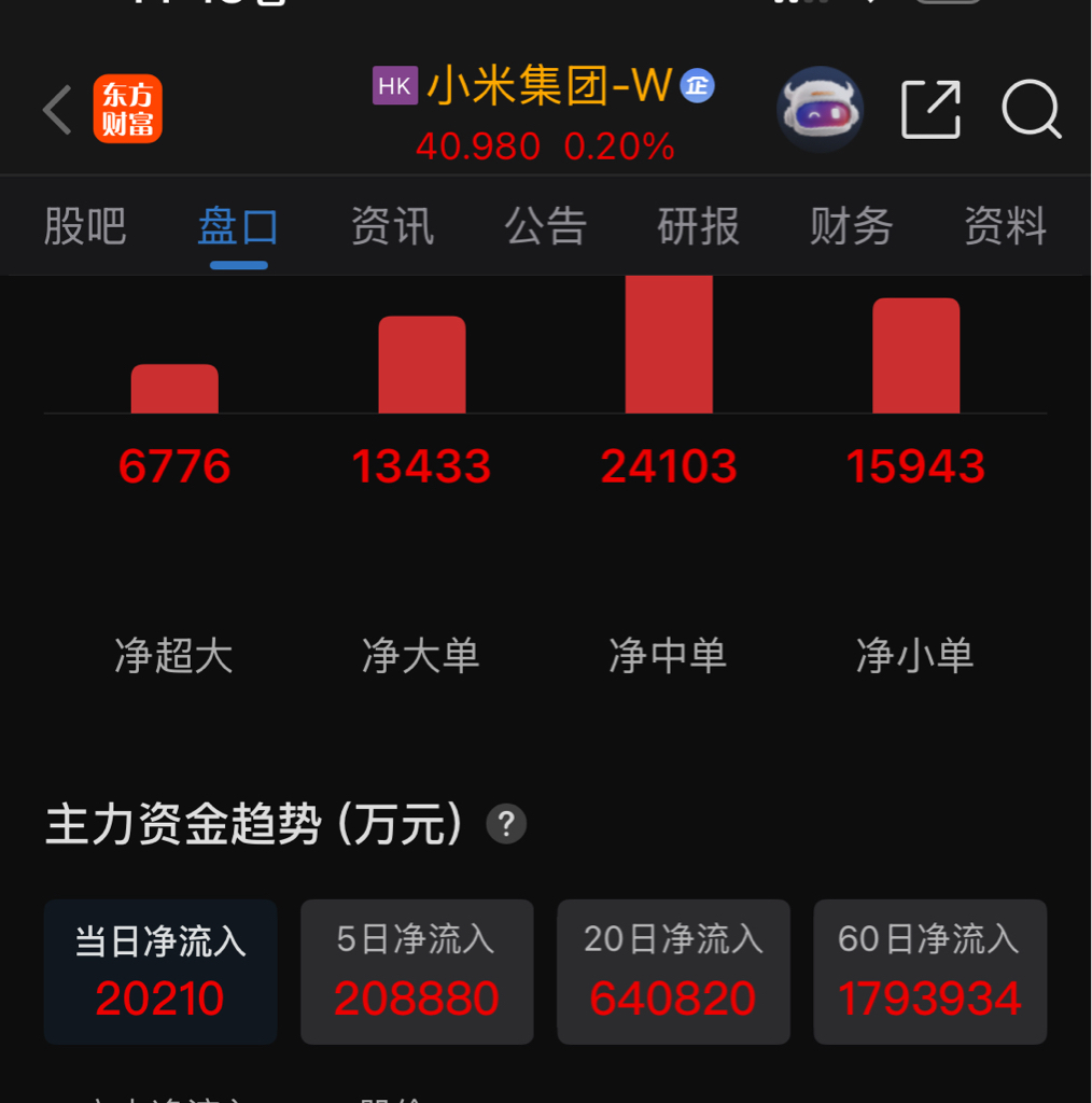 $小米集团-W(HK|01810)$ 连续两个月资金流入,我就不信不涨?