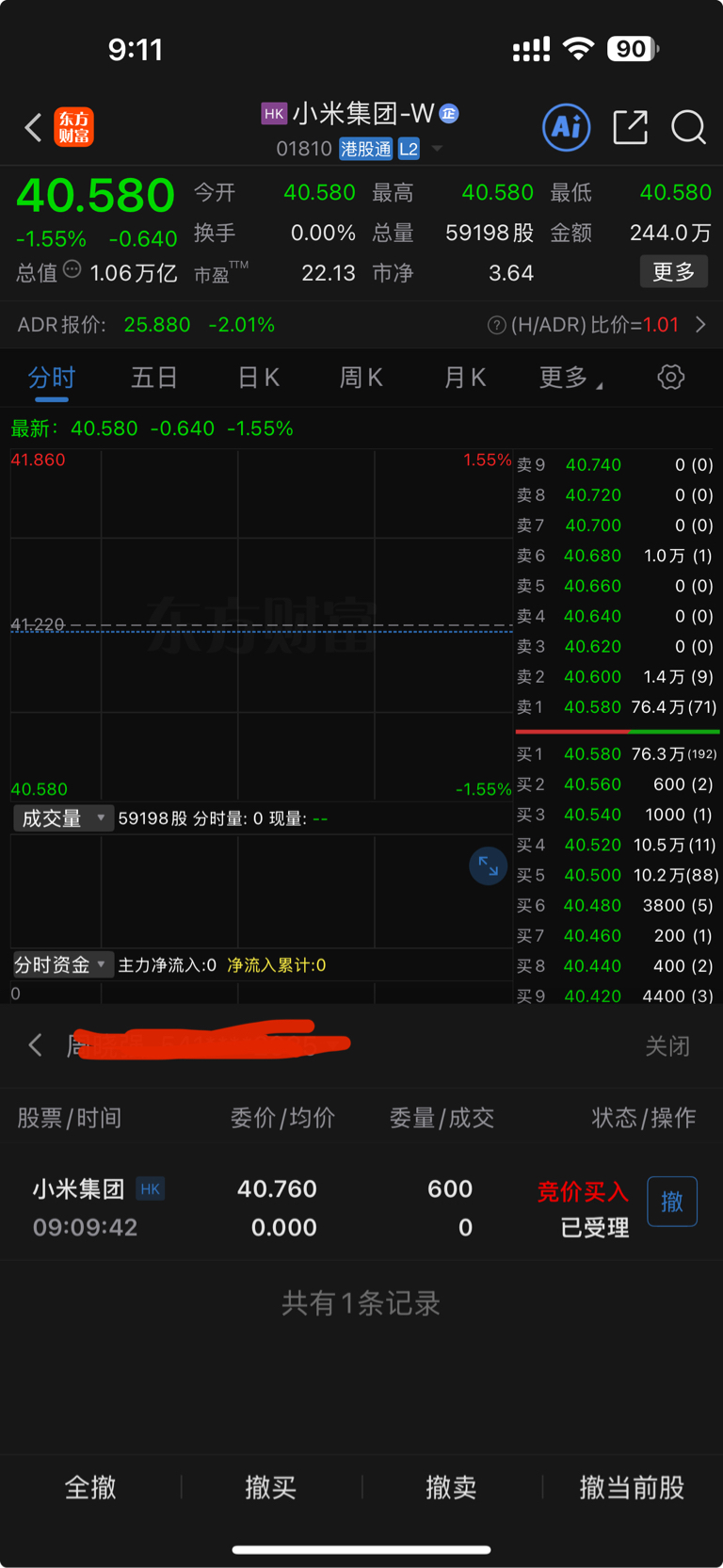$小米集团-W(HK|01810)$ 这是又要废单了?港股唯一不好的就是买卖价格太高太低直接废单,拉升时抢不到,砸盘时卖不出