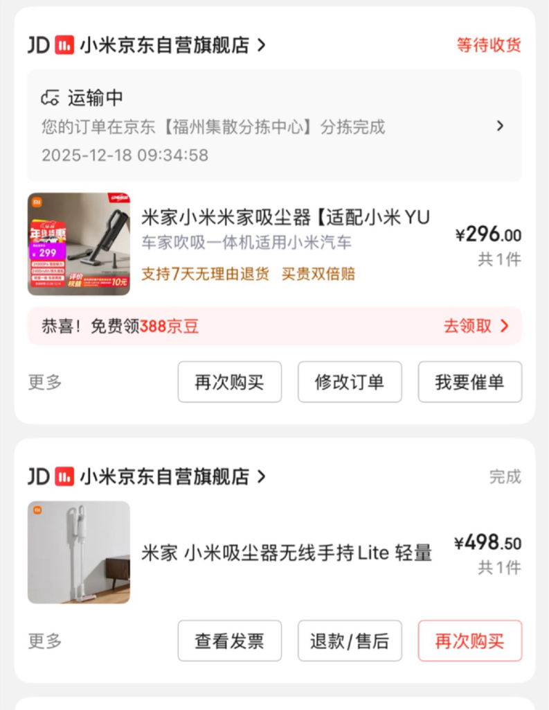 $小米集团-W(HK|01810)$ 又下单了小米吸尘器,这是我买的第二款小米家吸尘器,好产品,好公司