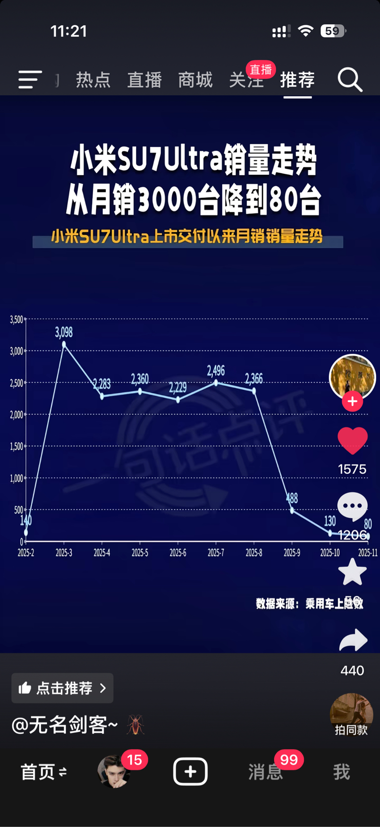 $小米集团-W(HK|01810)$ 彻底垮丝啦,月销量只有80了