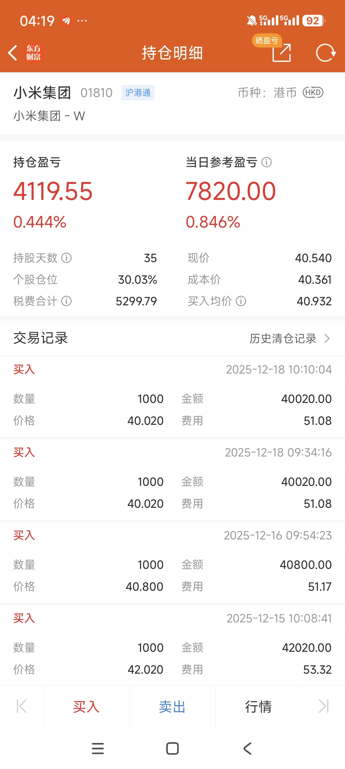 已经买了23000股小米了,还有80万资金预备,我要和空头干到底。