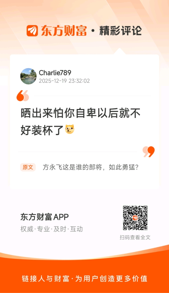 温馨提示: 1.根据《证券法》规定,禁止编造、传播虚假信息或者误导性信息,扰乱证券市场;2.用户在本社区发表的所有资料、言论等仅代表个人观点,与本网站立场无关,不对您构成任何投资建议。用户应基于自己的独立判断,自行决定证券投资并承担相应风险。《东方财富社区管理规定》
