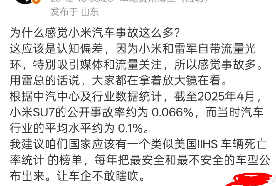 确实如此,小米事故率比平均水平低很多,要有自己的独立思考,相信小米会越做越好的