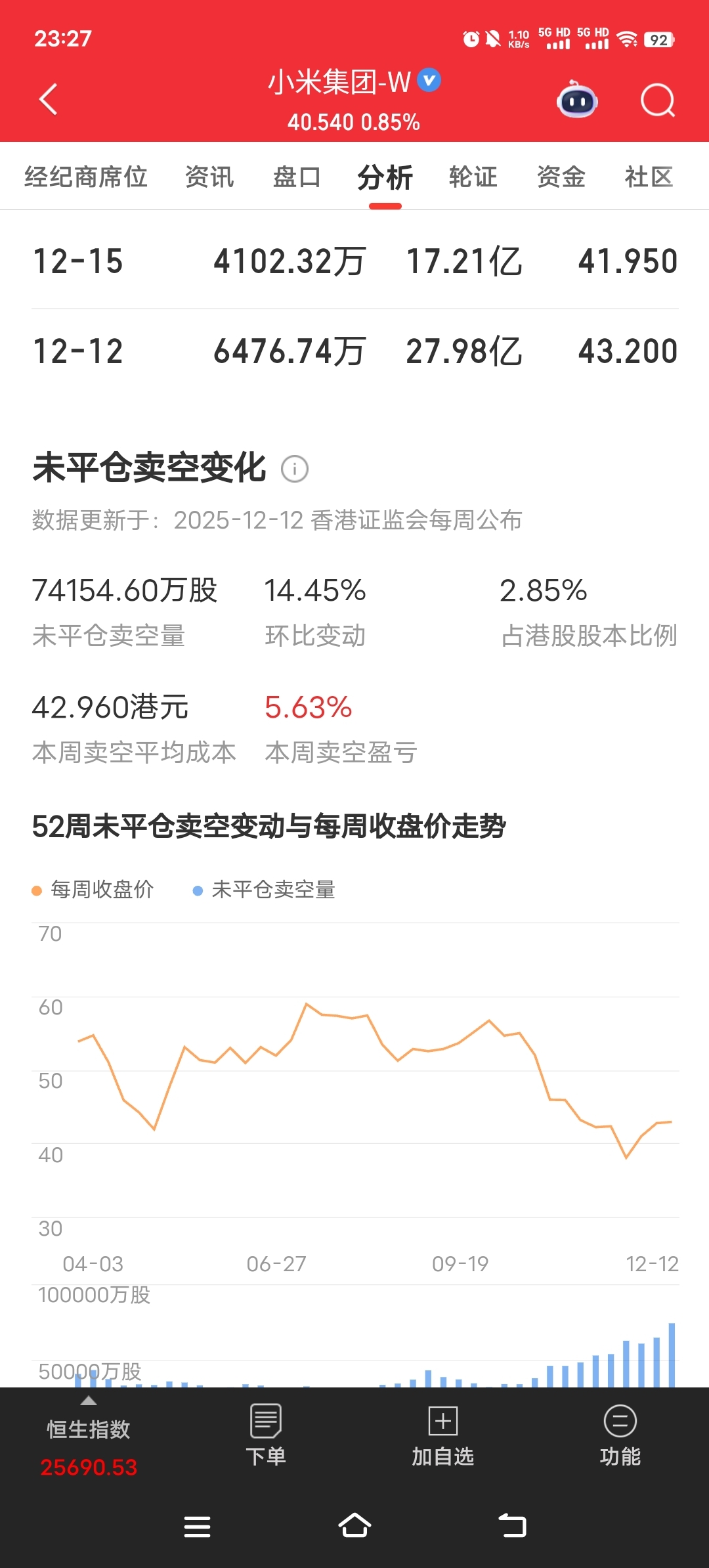 $小米集团-W(HK|01810)$ 未平仓的空头股暴增到7.4亿多股了。牛啊
