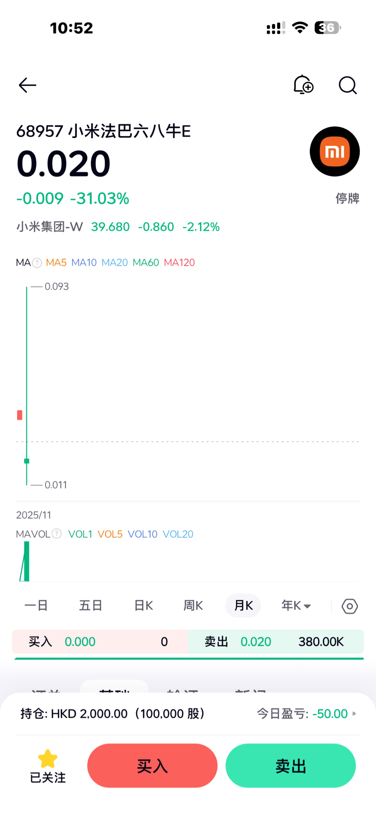 $小米集团-W(HK|01810)$ 雷子这下真给我雷了,刚刚爆仓,心情很舒服