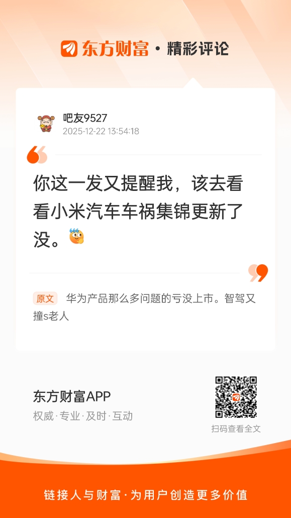 我在《华为产品那么多问题的亏没上市。智驾又撞s老人》的评论获得了大家的关注。