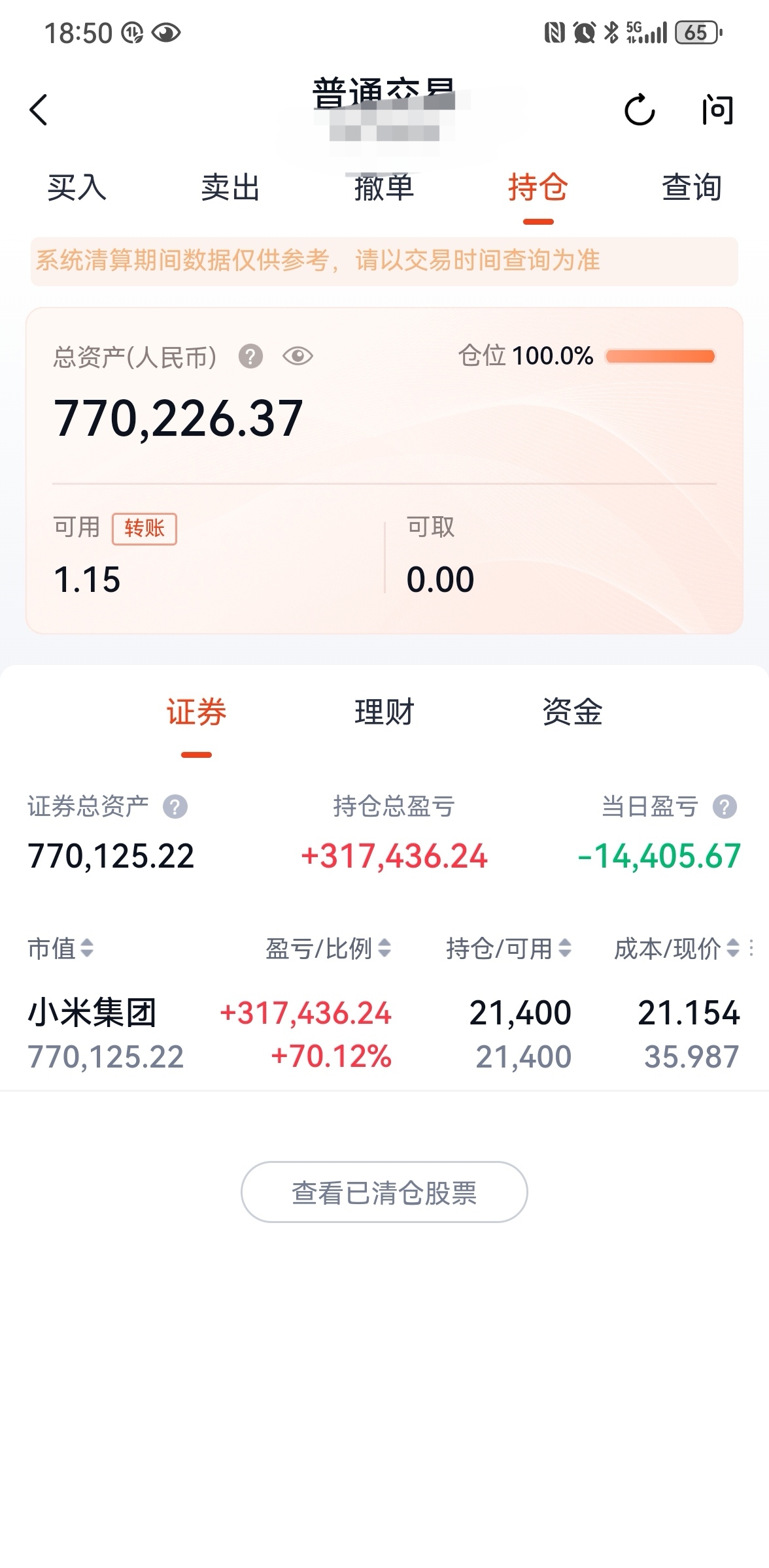 $小米集团-W(HK|01810)$ #实盘记录# 当初买的太少,现在有牛回头的机会,有闲钱就继续加仓,反正小米的汽车供不应求,负面舆论影响不到根本。等明年yu9发布,又该迎来反转了。