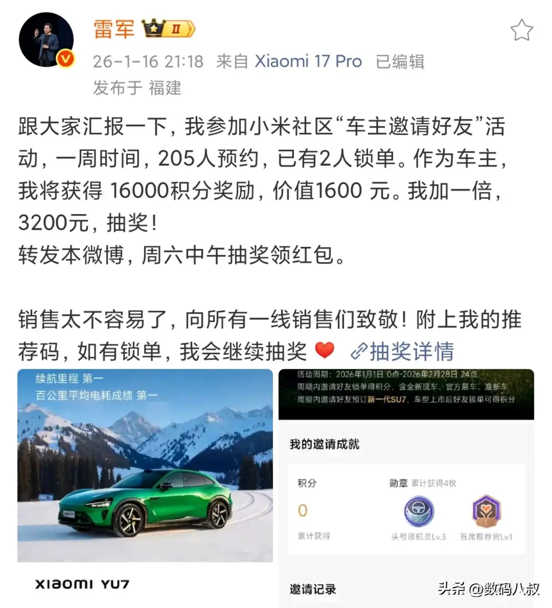 $小米集团-W(HK|01810)$ 看一组数据,尴尬,205预约,2人锁单,说不定还是水单,药丸了吗