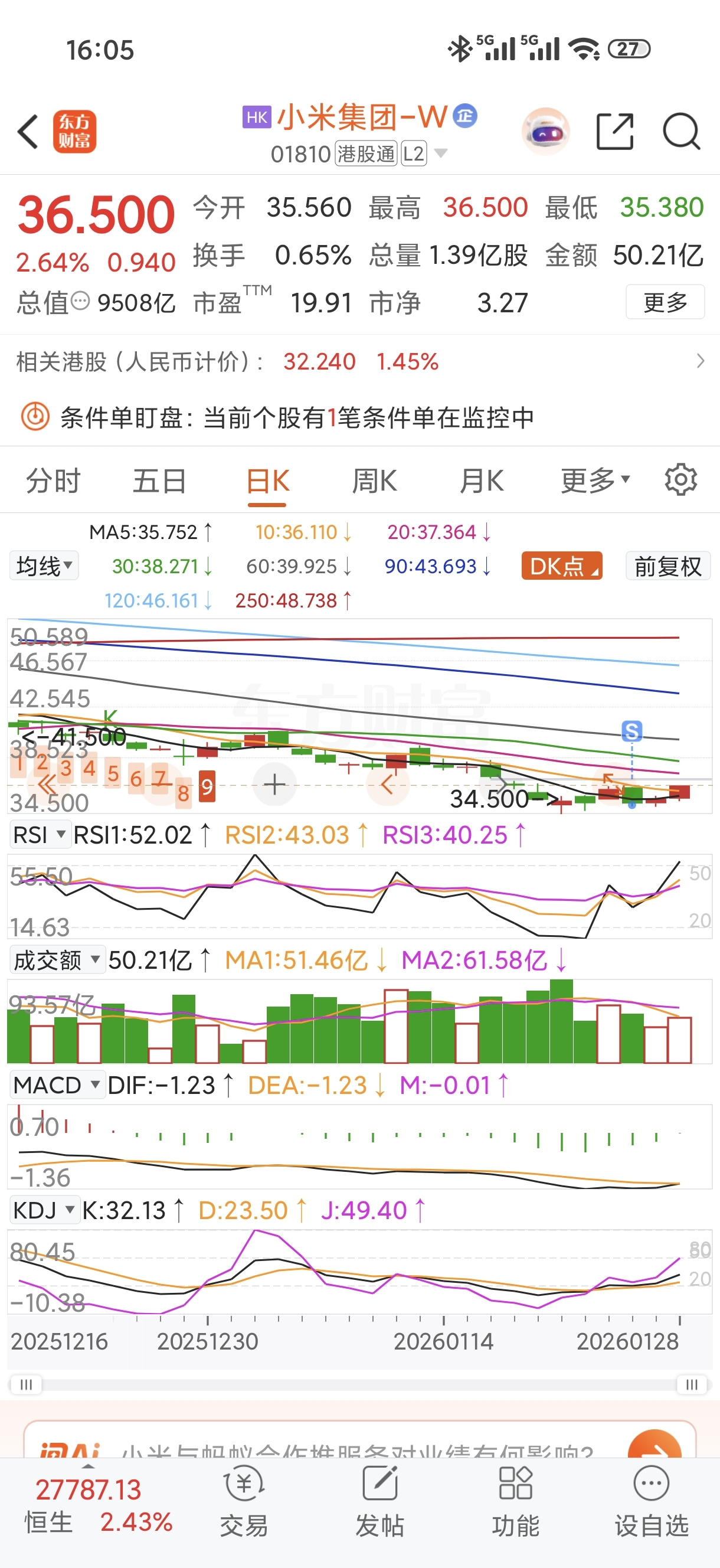 $小米集团-W(HK|01810)$ 前天清的今天涨了无缘无分没办法祝米子一路长红吧!