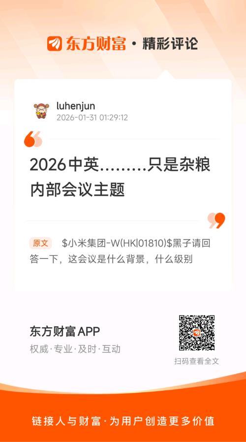温馨提示: 1.根据《证券法》规定,禁止编造、传播虚假信息或者误导性信息,扰乱证券市场;2.用户在本社区发表的所有资料、言论等仅代表个人观点,与本网站立场无关,不对您构成任何投资建议。用户应基于自己的独立判断,自行决定证券投资并承担相应风险。《东方财富社区管理规定》