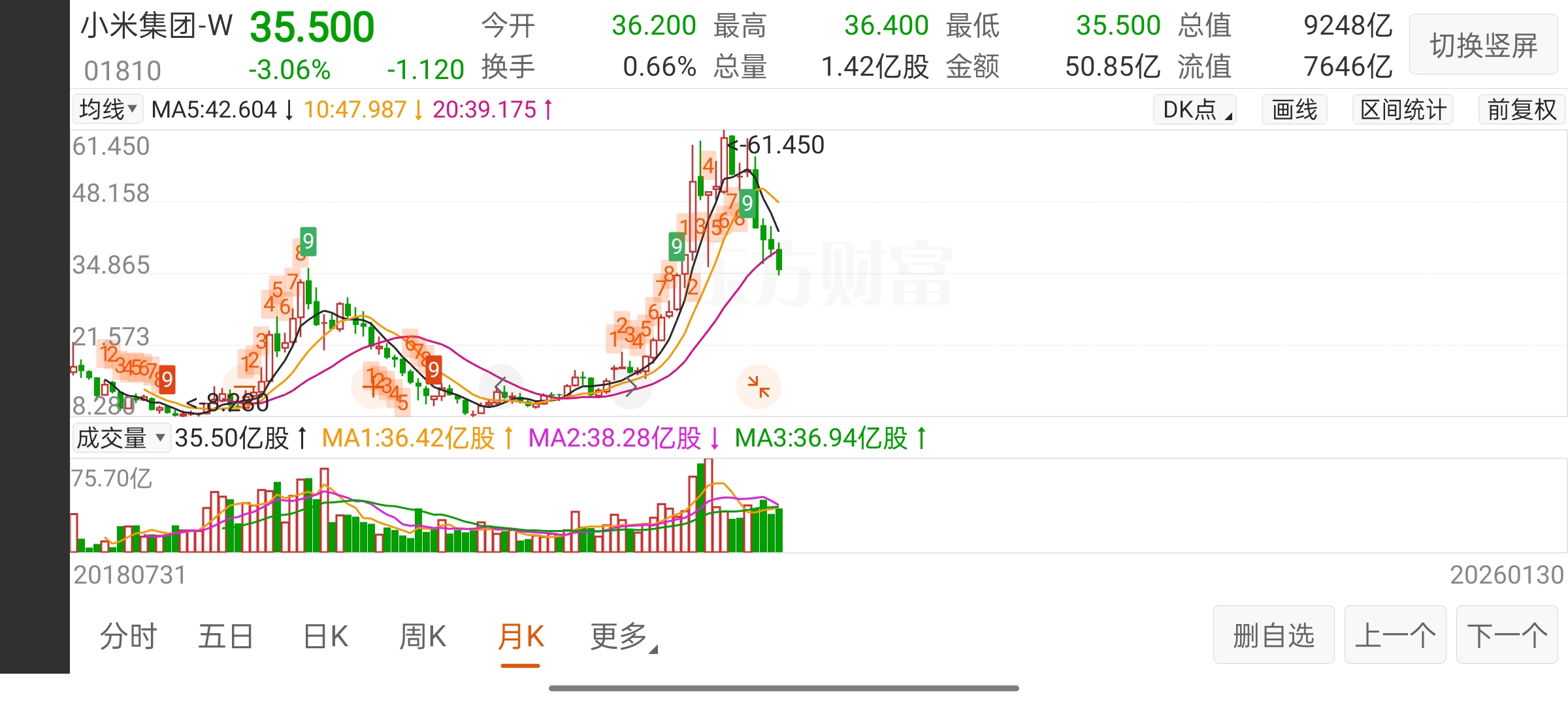 $小米集团-W(HK|01810)$ 从趋势来看最少还得跌6,7个月10至11元左右企稳