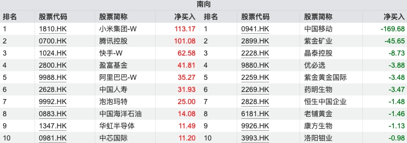 这一周南下资金净买入第一是小米集团-W,卖出第一的是中国移动H股。问题是买入第一
