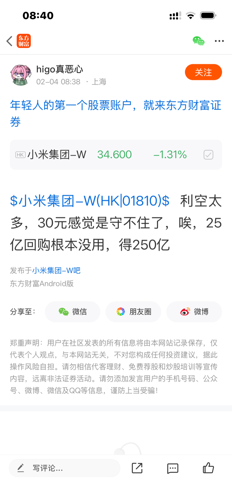 温馨提示: 1.根据《证券法》规定,禁止编造、传播虚假信息或者误导性信息,扰乱证券市场;2.用户在本社区发表的所有资料、言论等仅代表个人观点,与本网站立场无关,不对您构成任何投资建议。用户应基于自己的独立判断,自行决定证券投资并承担相应风险。《东方财富社区管理规定》