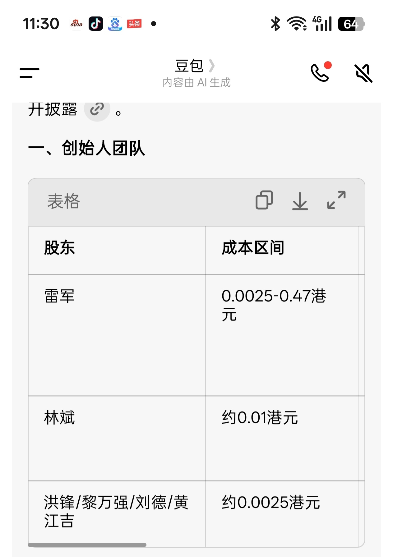 看看杂粮公司的几个大股东的成本,米粉有何感想。