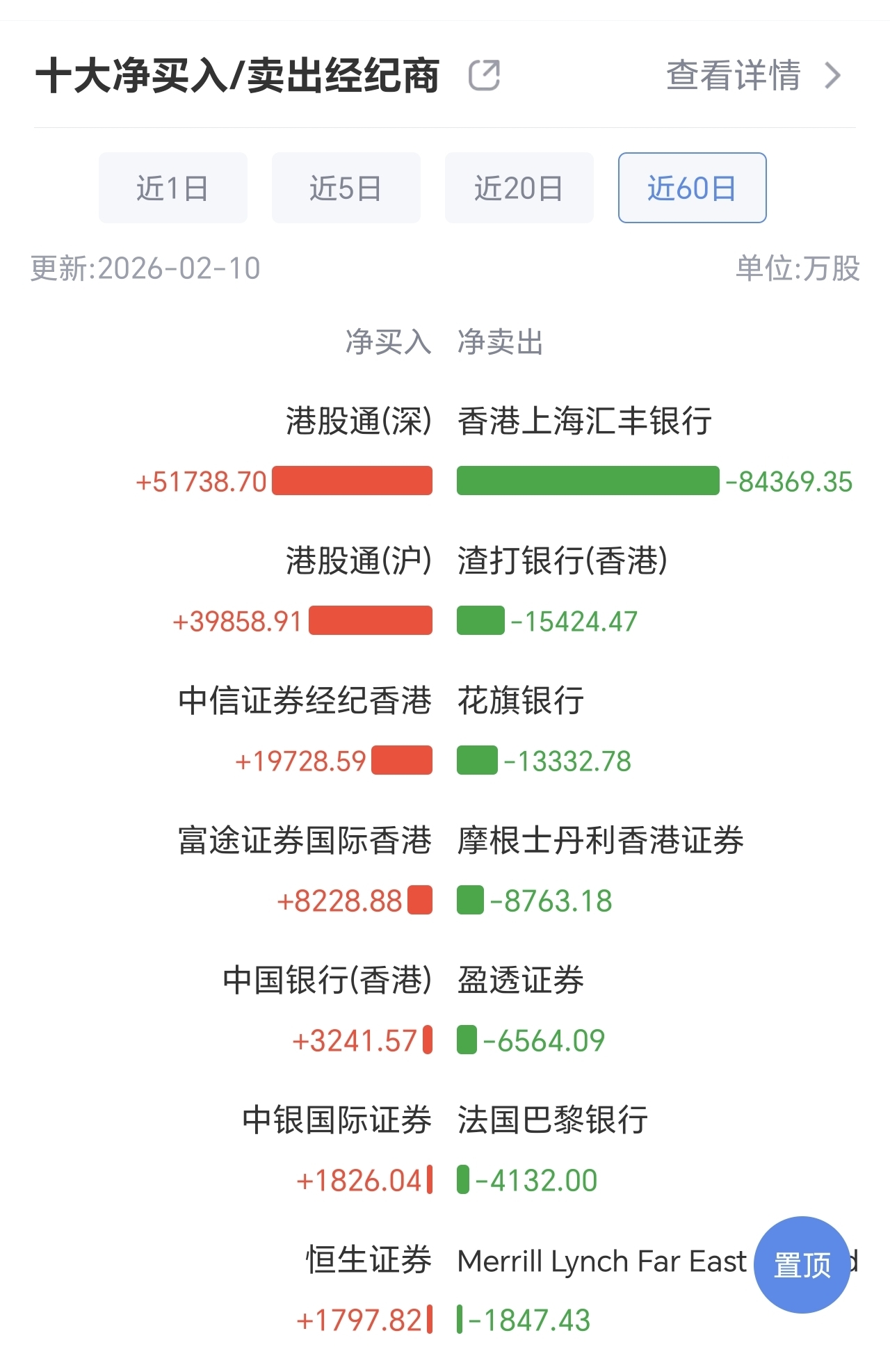从60个交易日汇总数据来看,大陆资金接住了外资的抛售,港股通沪+深≈≈汇丰+渣打