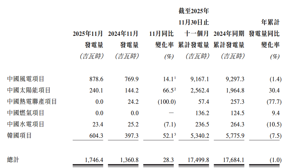 中广核新能源11月完成发电量1746.4吉瓦时,同比增28.3%