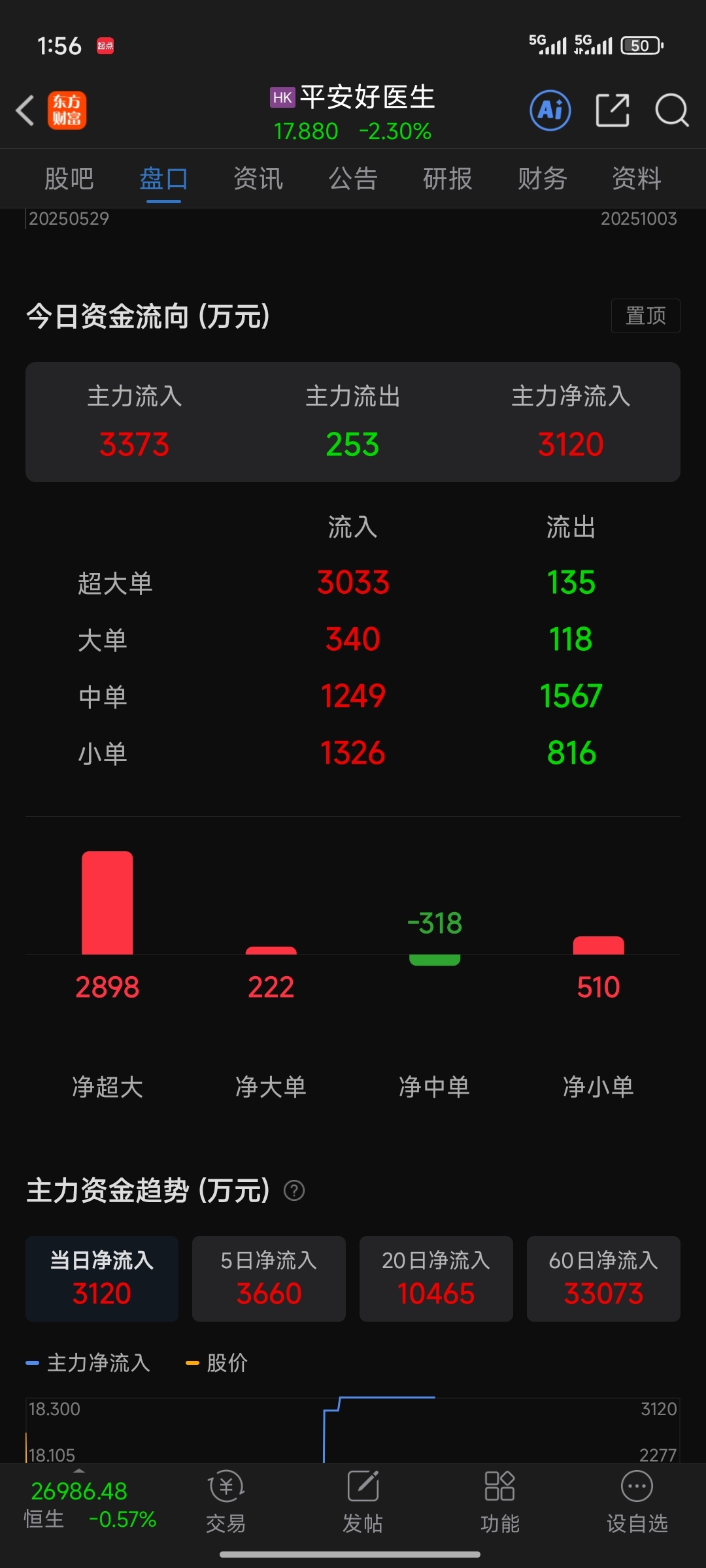 $平安好医生(HK|01833)$ 这个成交量,这个价格,还是净流入,呵呵了。