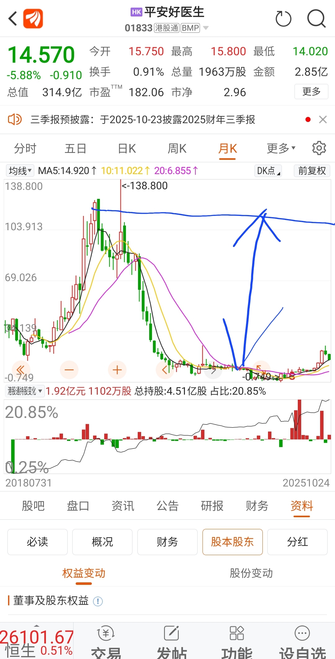$平安好医生(HK|01833)$ 以后会不会升至1百多块