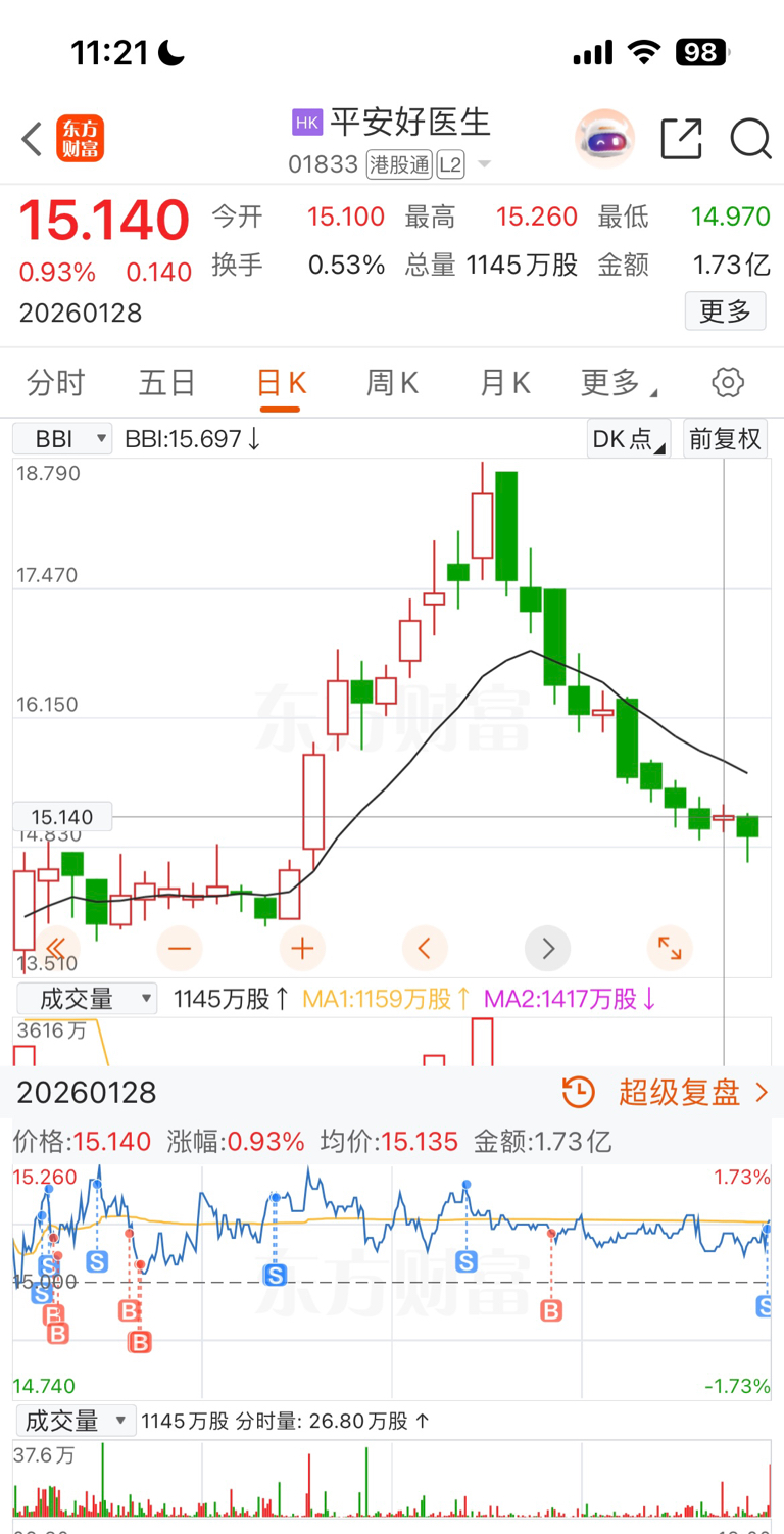 $平安好医生(HK|01833)$ 昨天好不容易T了一点利润,今天一早砸得渣都不剩,反弹出了,以后不碰这种垃圾了。