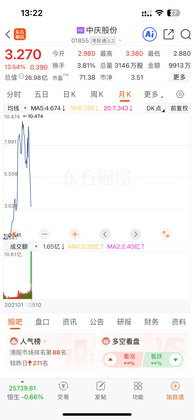 $中庆股份(HK|01855)$ 日线看着好便宜,但打开月线,我腿,绝对是老千股!