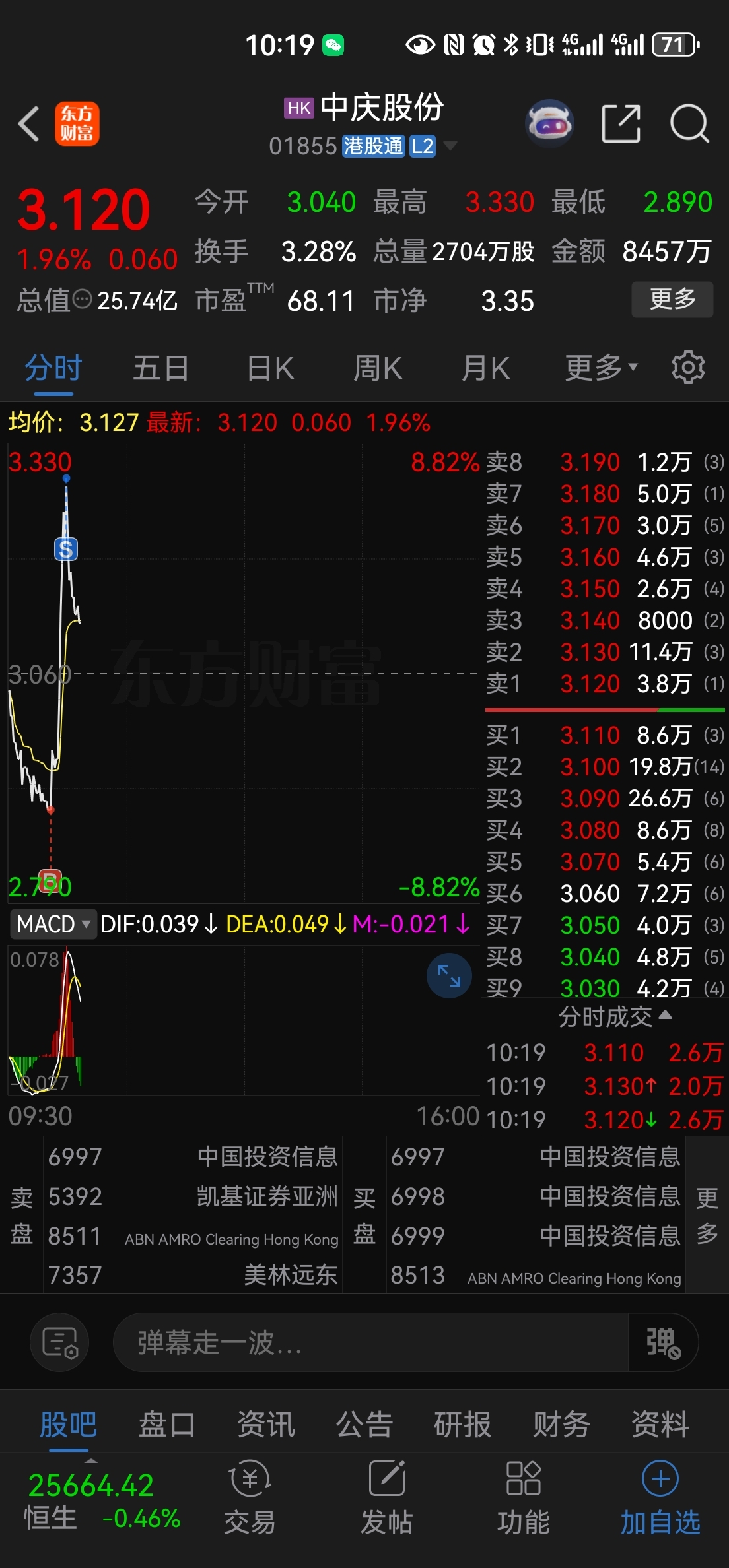 $中庆股份(HK|01855)$ 手速慢一点就要被套。