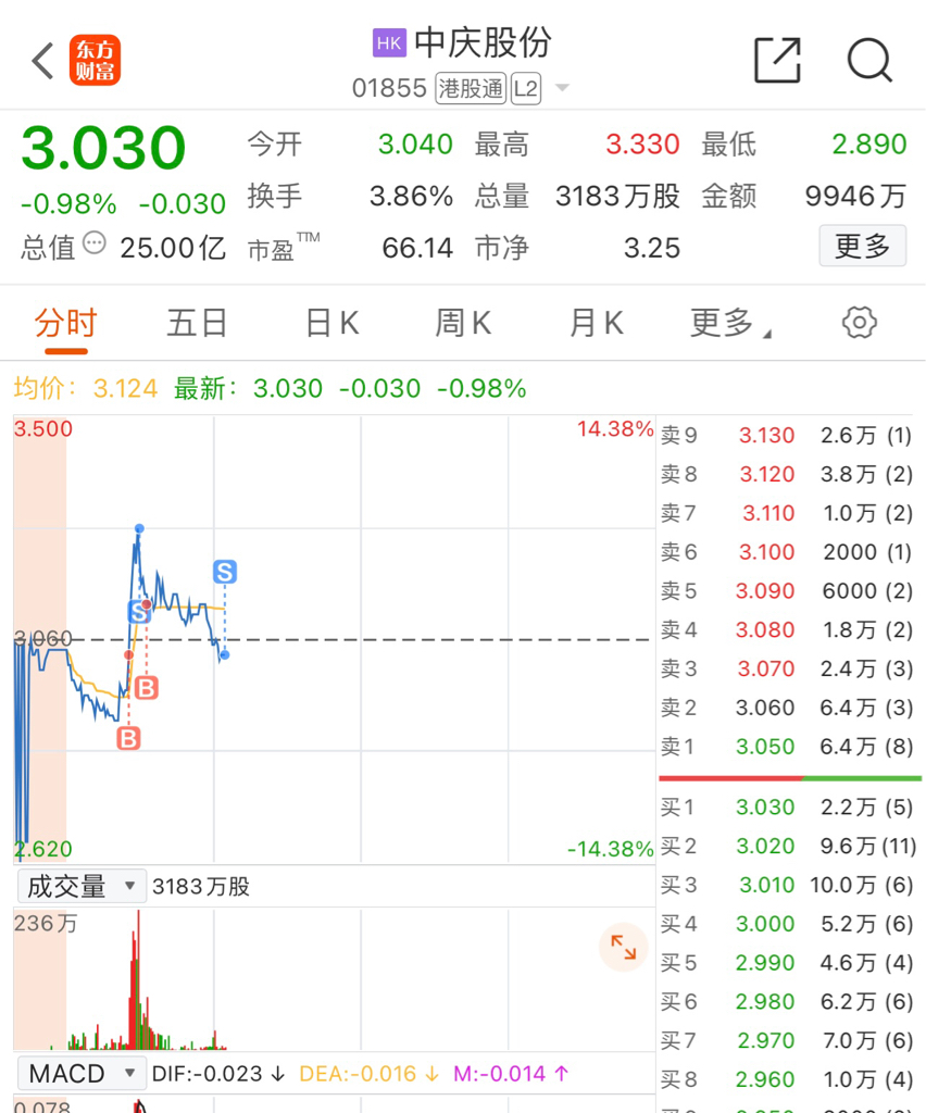 $中庆股份(HK|01855)$ 还是得一次就走,格局不了,……想做2波又没了3个点