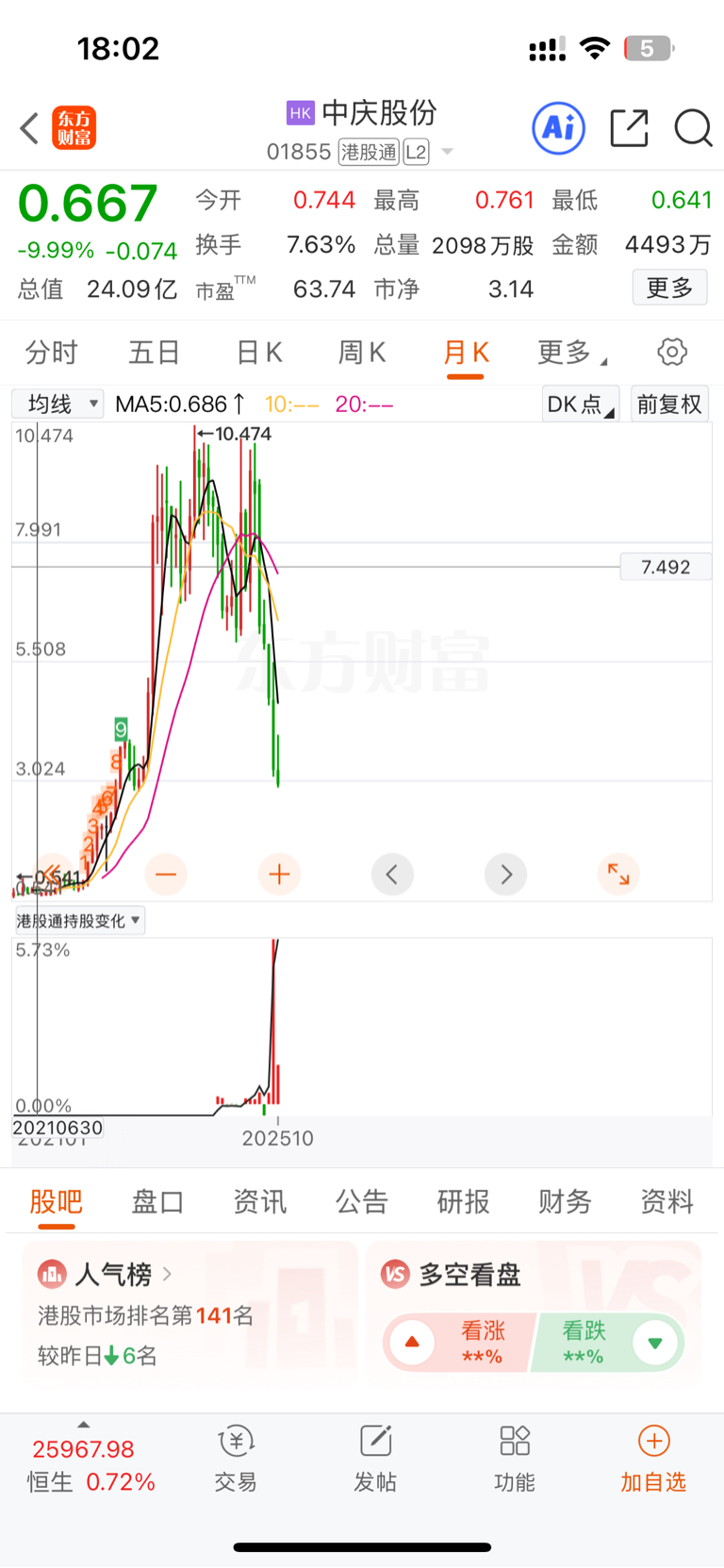 $中庆股份(HK|01855)$ 大庄股,看似很便宜,其实在天上!死扛注意膝盖斩。。。。