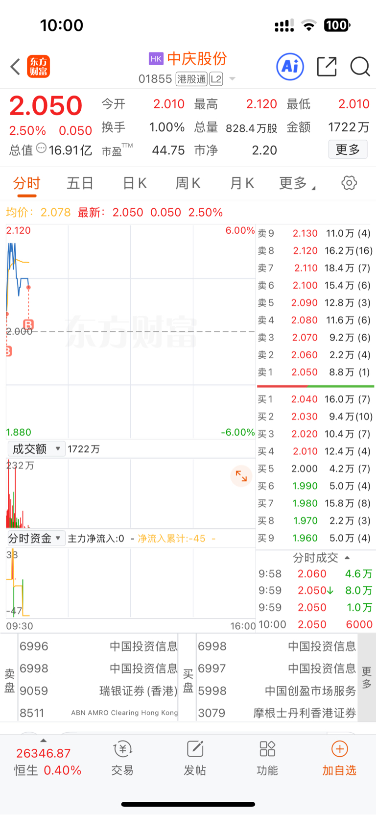 $中庆股份(HK|01855)$ 买一点搏反弹!哈哈