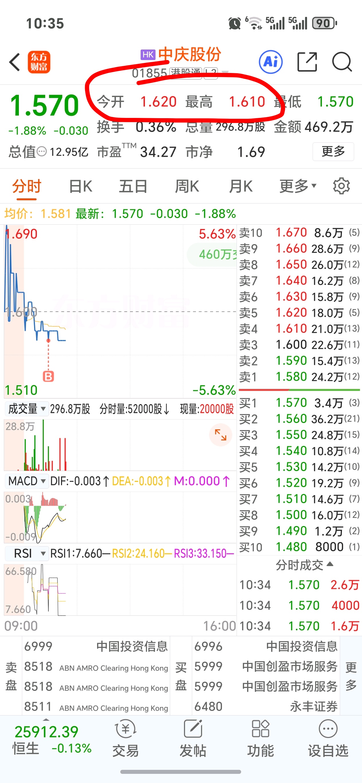 $中庆股份(HK|01855)$ 1.62开盘,最高是1.61?这不是搞笑吗?
