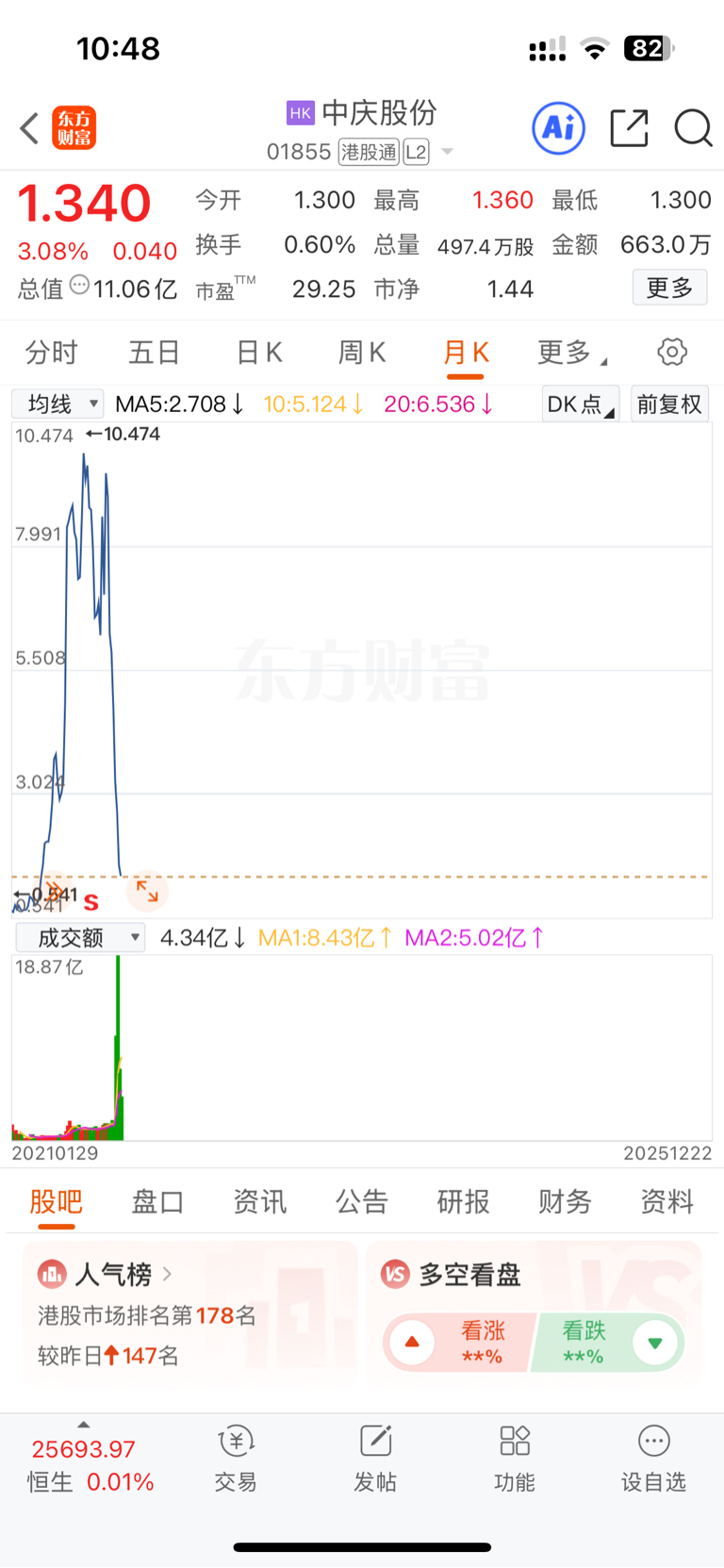 $中庆股份(HK|01855)$ 打开月线你就会发现它股价只值2毛,随时是可能和狮腾一样再次暴跌90%。。。