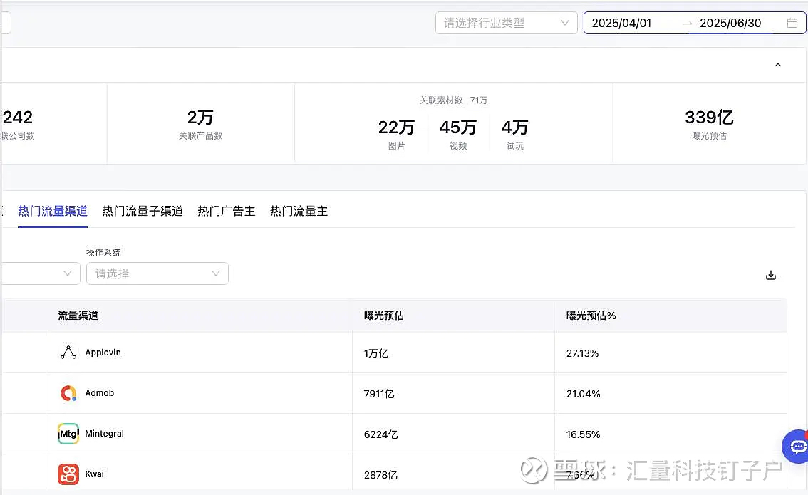 转自雪球,汇量2025年连续三季度的曝光数据,环比持续增长