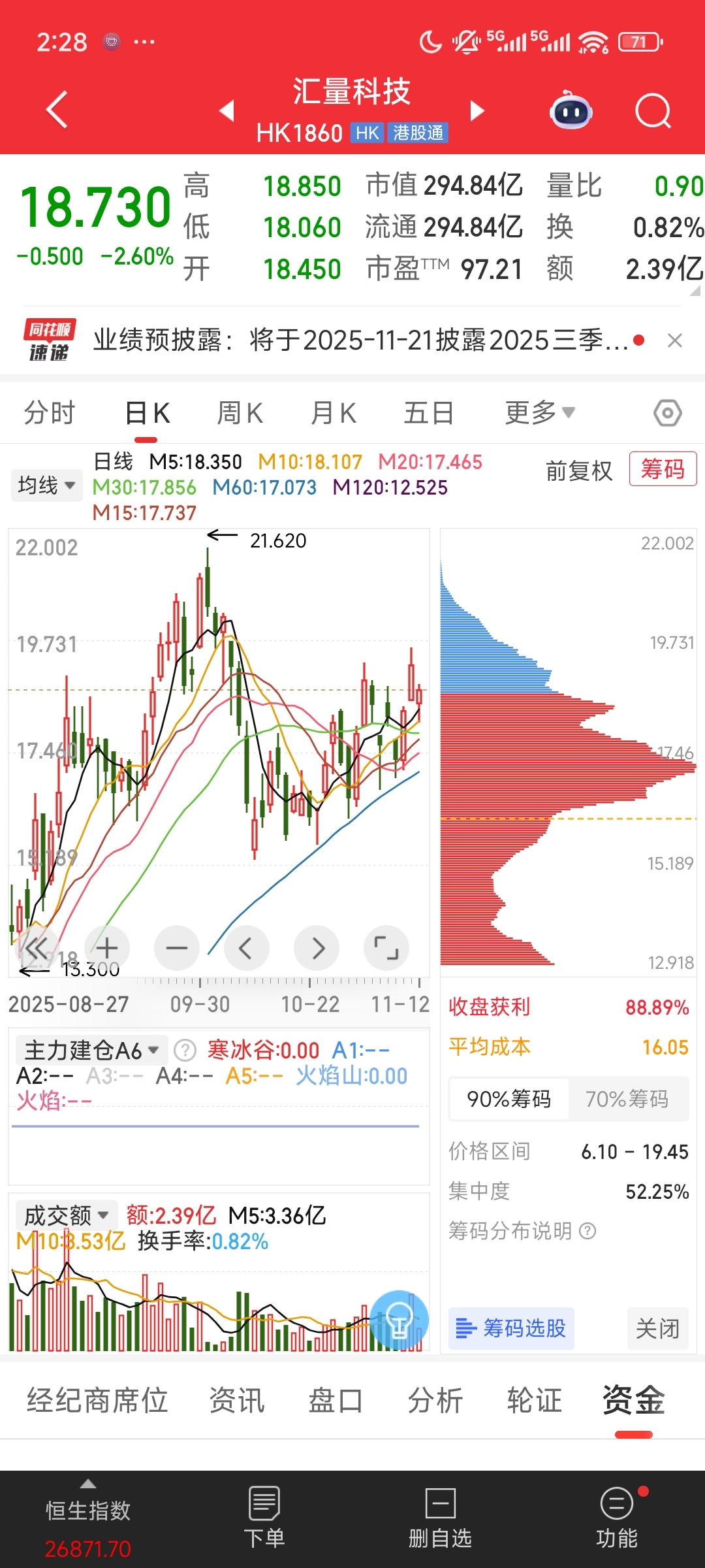 $汇量科技(HK|01860)$ 给大家看看筹码峰,支撑位非常强,跌不下去的