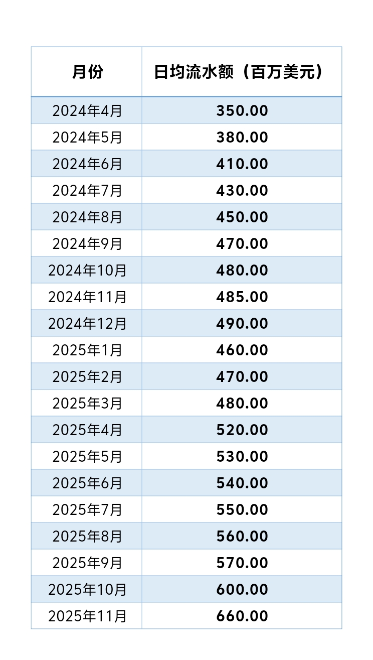 $汇量科技(HK|01860)$ 日均流水变动情况