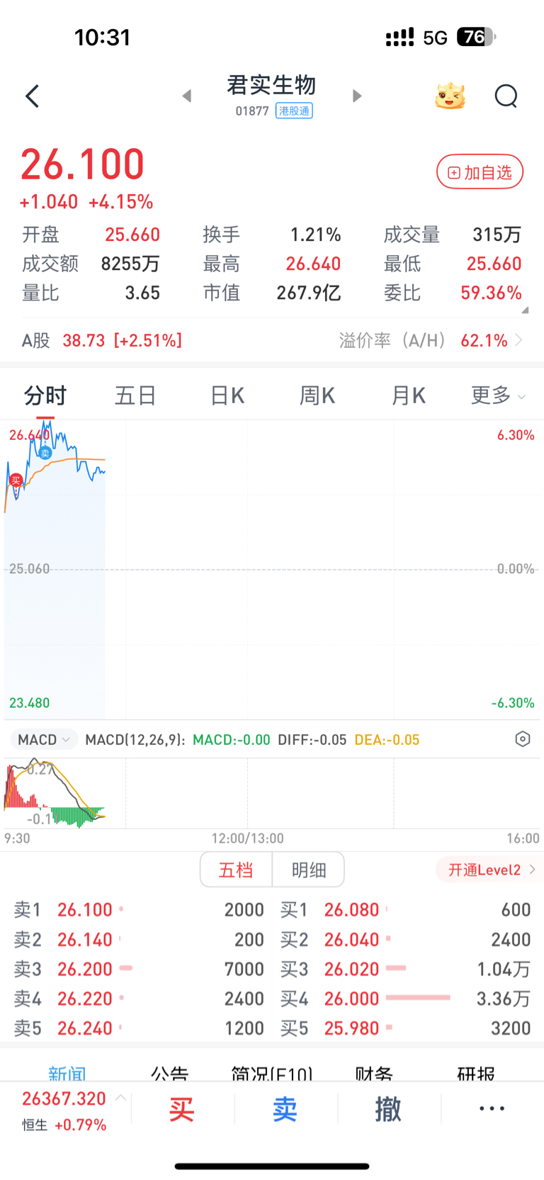 $君实生物(HK|01877)$ 把上周25进的卖出去了