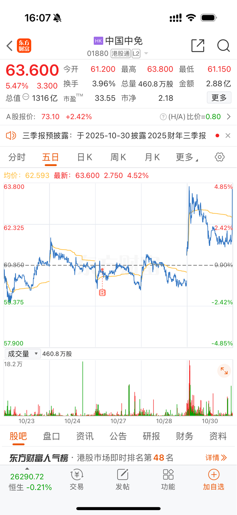 $中国中免(HK|01880)$ 目前阶段就是在消费亏钱,腰斩,归零,我都认。但是就是不会去易中天里去接盘。