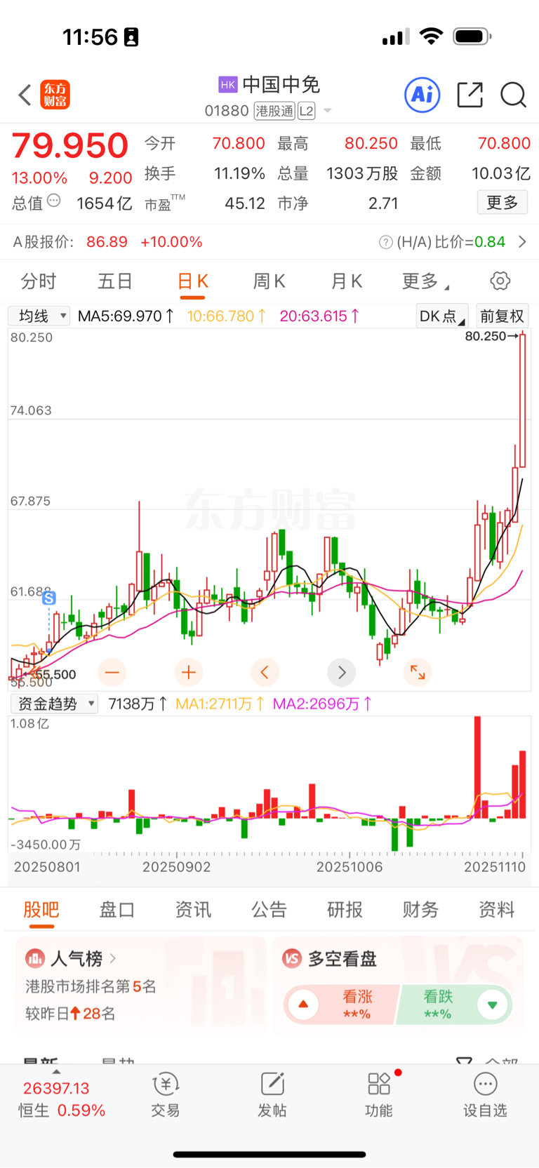 $中国中免(HK|01880)$ 想着长线持有2年。就是没有耐心