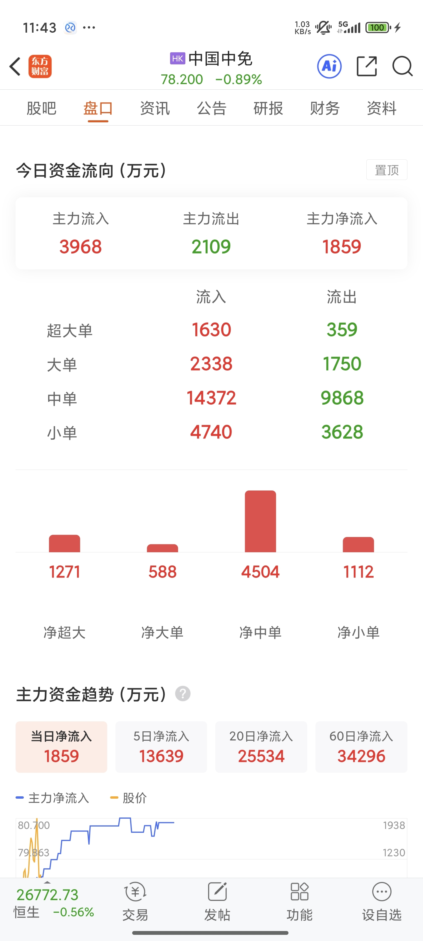 $中国中免(HK|01880)$ 这全净流入还跌一个点?