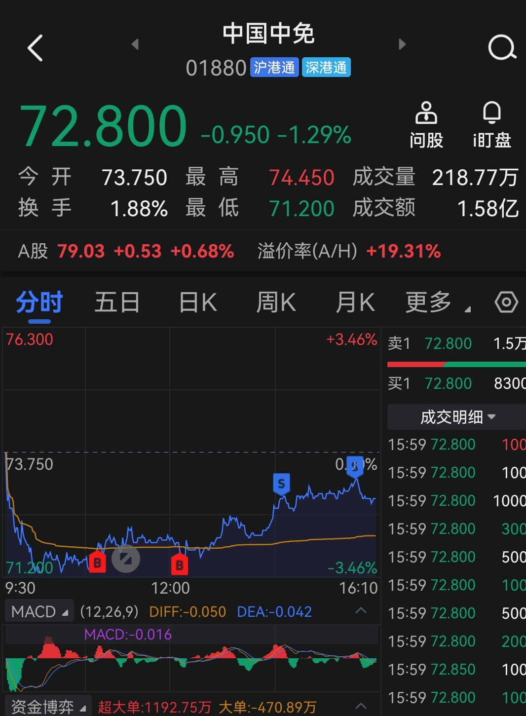 $中国中免(HK|01880)$ 1块钱也是钱,下一把等中金
