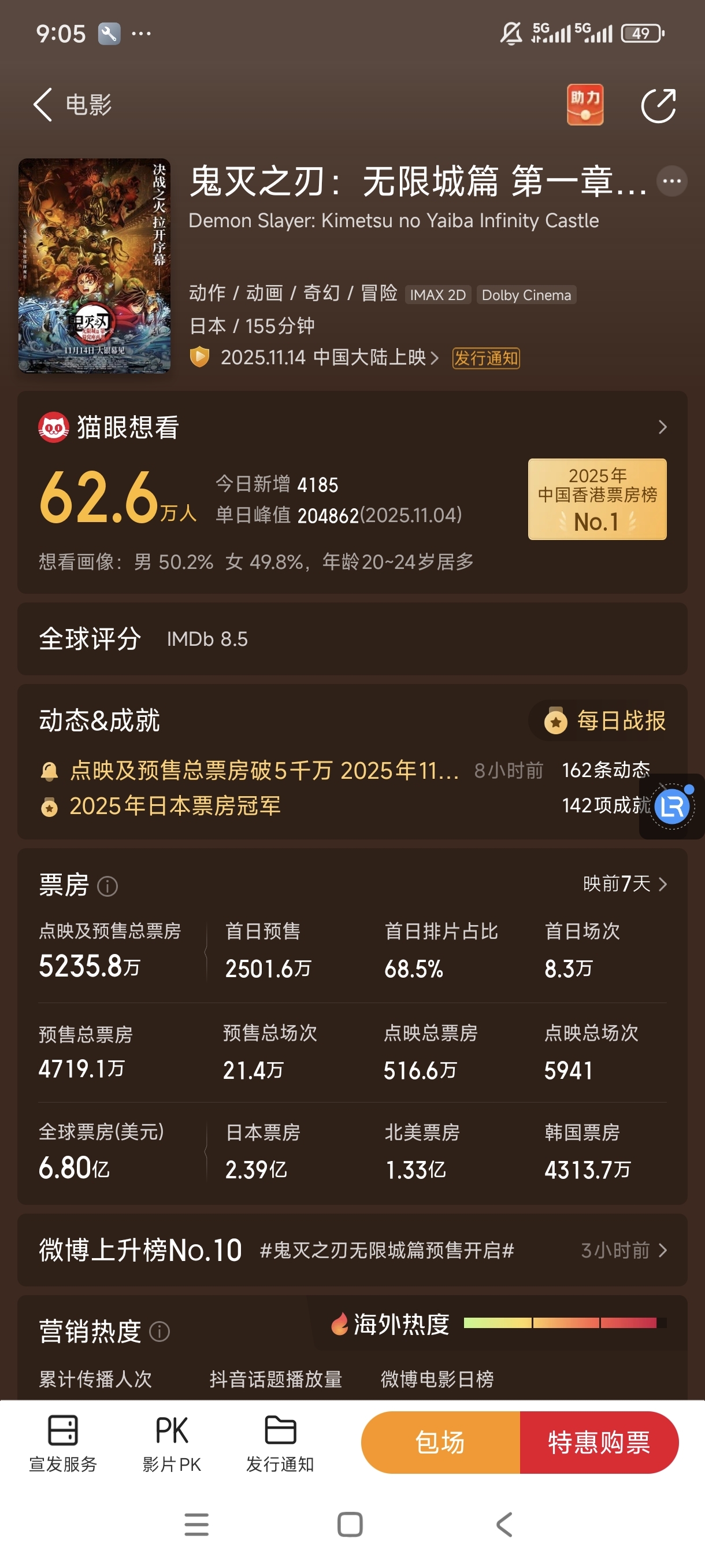 两天预售五千万还不够强么?五天预计能破亿。作为对比,大热门电影731十一天预售才