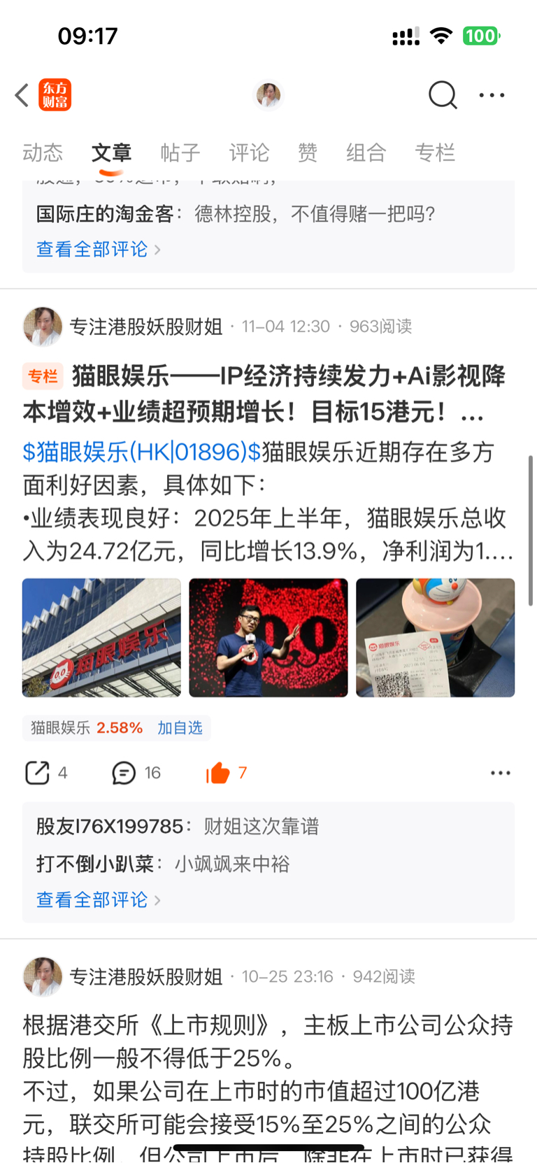 $猫眼娱乐(HK|01896)$ 财姐完美预测!开盘卖了猫眼抄底十几亿的超跌股了!财姐继续吃肉!