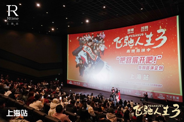 2月17日,《飞驰人生3》在上海万达影城松江店路演。
