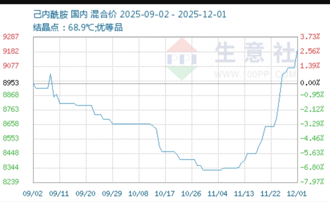 12月1日己内酰胺继续上涨1.17%%