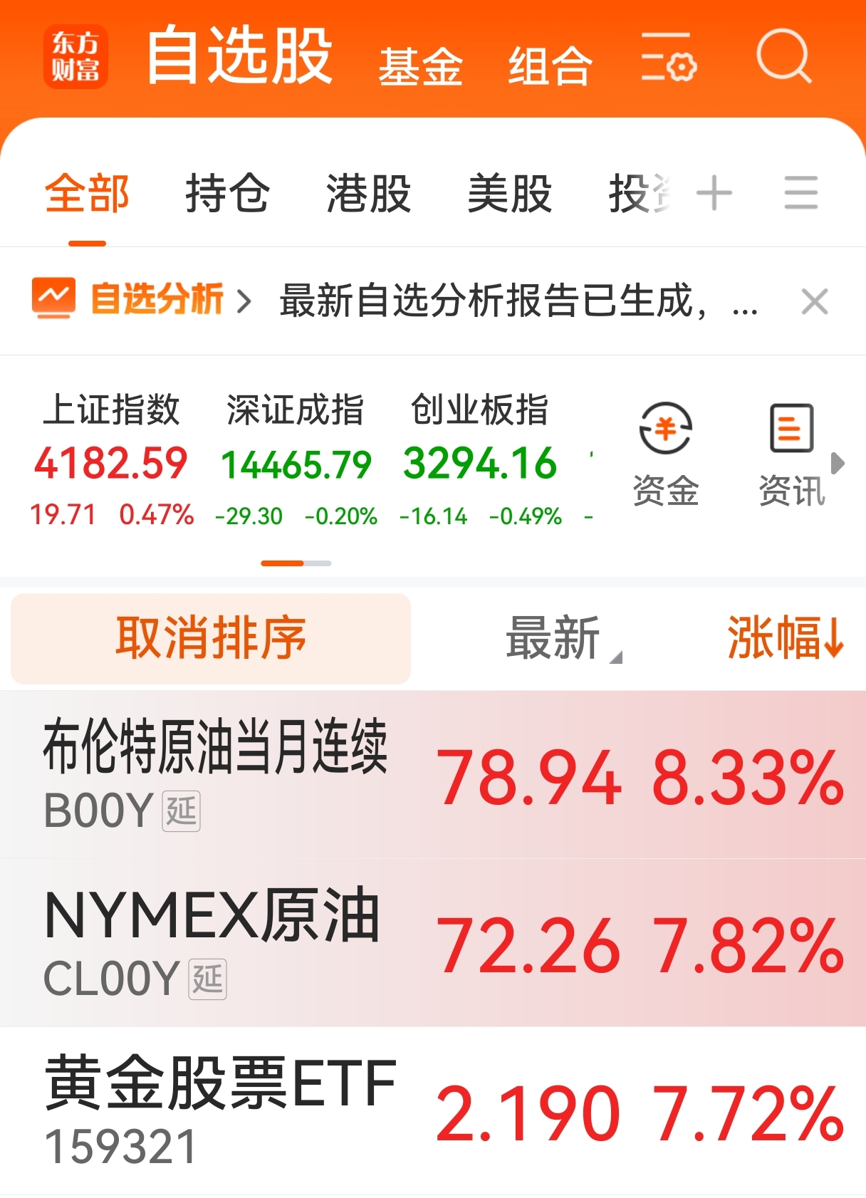 那接下来咋整?石油、黄金、海运这些今天涨疯了的,追不追?反正我是没追。不排除明天还有冲高的劲儿,看黄金那走势图,确实唬人。我自己手里还捏着点实物金条呢,当年400多元一克买的,现在都1200元左右了。这一轮我打算再看看,能不能冲到1400、1500卖出一些,反正拿了好多年了,不差这几天。